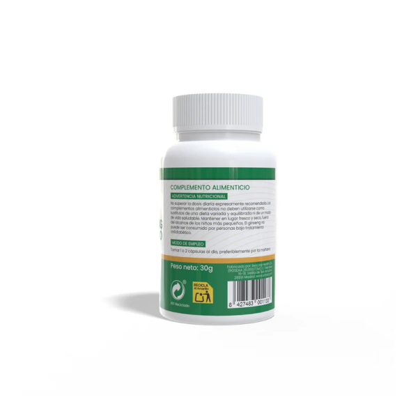 60 cápsulas vegetales de 500 mg. Peso neto: 30 g. Duración aproximada: 30 días.